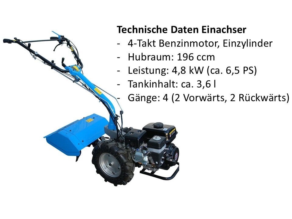 Der massive und stabile Motoreinachser verfügt über einen Vorwärts- und einen Rückwärtsgang und lässt sich dadurch einfach und komfortabel manövrieren. Je nach Bedarf können mehrere Fräsmesser montiert werden, sodass sich die Arbeitsbreite flexibel anpassen lässt. So bearbeiten Sie sowohl kleinere Beete als auch größere Flächen effizient.
